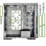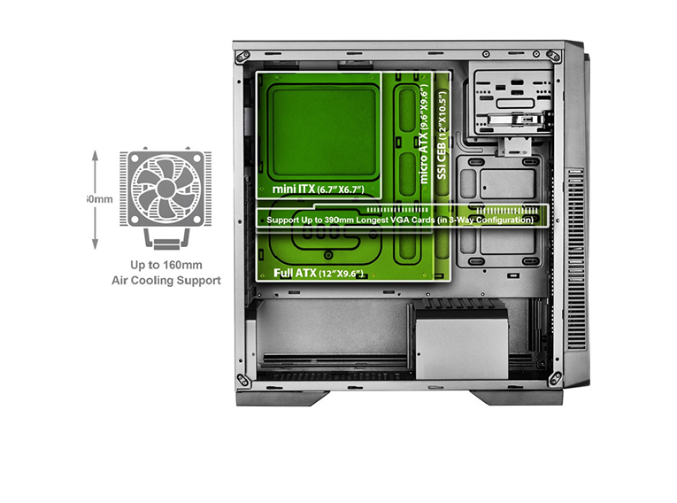 قابلیت هایی مانند داشتن 8 اسلات توسعه، پشتیبانی از مادربردهای حرفه ای تا ابعاد (CEB (12"x10.5 و امکان نصب اغلب خنک کننده های آبی و بادی در کنار بدنه مستحکم از جنس استیل با ضخامت 0.7mm از جمله مهم ترین خصوصیات کیس کامپیوتر گرین مدل Green PARSA فوق العاده محسوب می شوند که معمولاً نمونه آن ها را در کیس های میان رده گیمینگ مشاهده می کنیم.