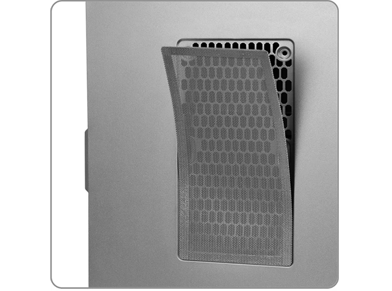 مجاری ورودی هوا در بخش کف (ورودی هوای پاور) و درب کناری کیس پارسا با فیلترهای مگنتی با قابلیت شست و شو پوشیده شده اند. این فیلترها نقش بسزایی در جلوگیری از ورود گرد و خاک به درون کیس ایفا می کنند.